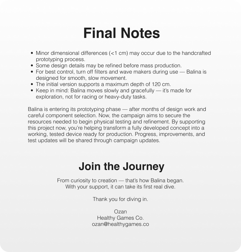 Be among the first to back Balina on Indiegogo and receive exclusive early-bird rewards when we launch. Explore our planned reward tiers below — each designed to bring you closer to the world beneath the surface.